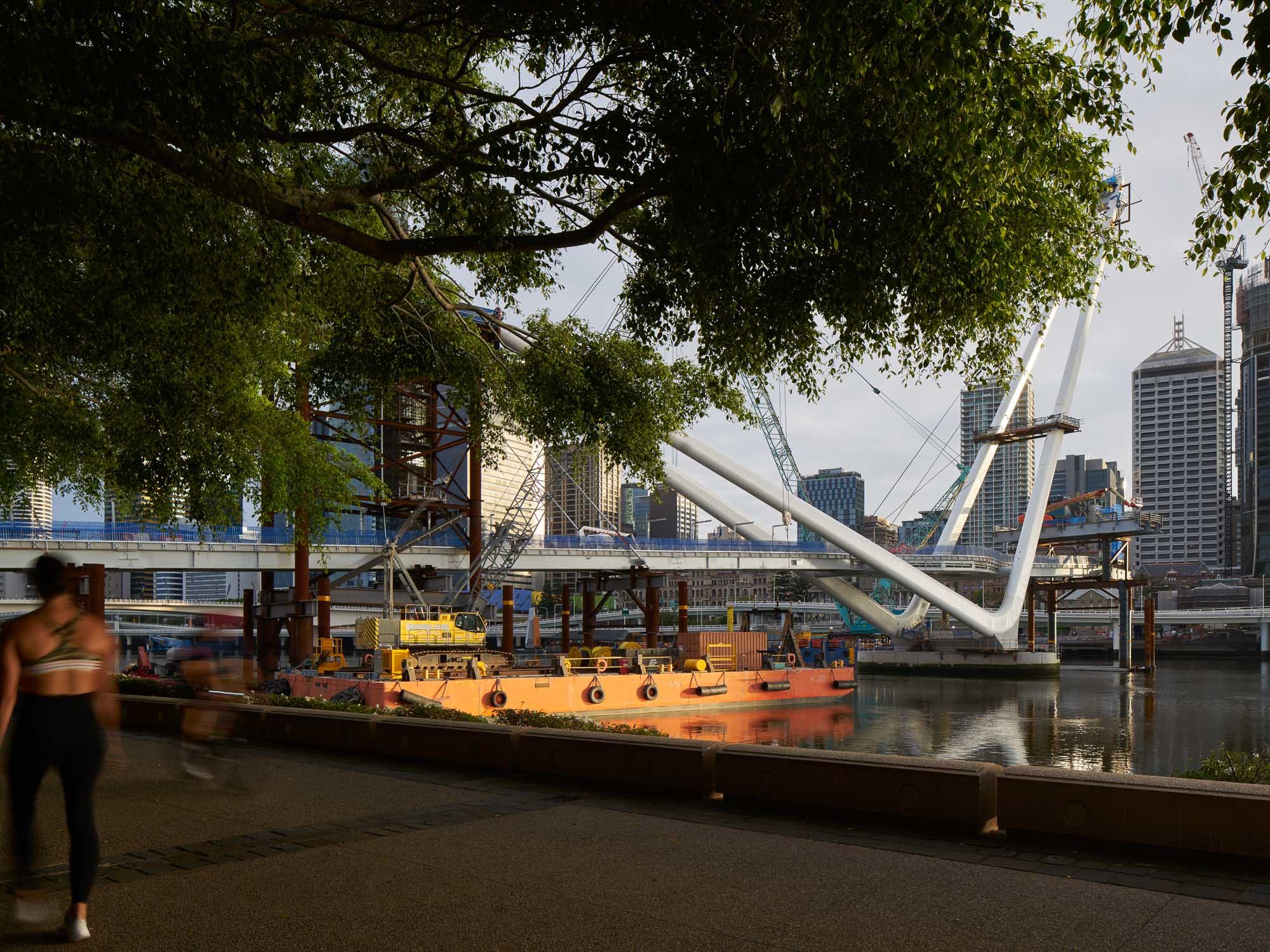 Neville Bonner footbridge showing temporary works methodology to facilitate construction