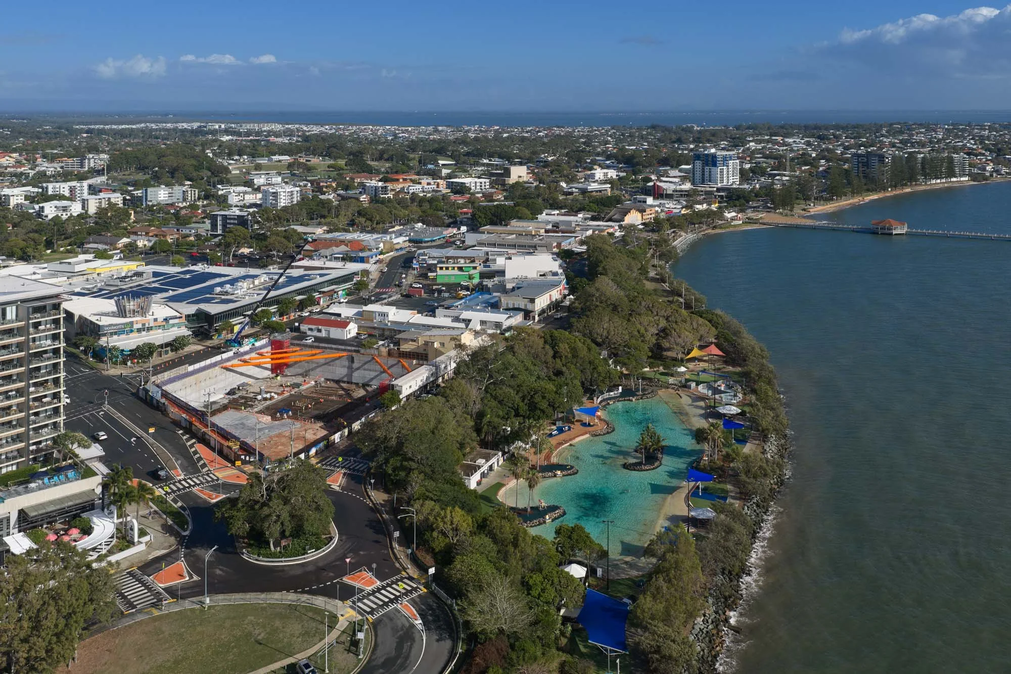 Progress wide shot showing One Redcliffe project site in context of broader community to suit progress reporting