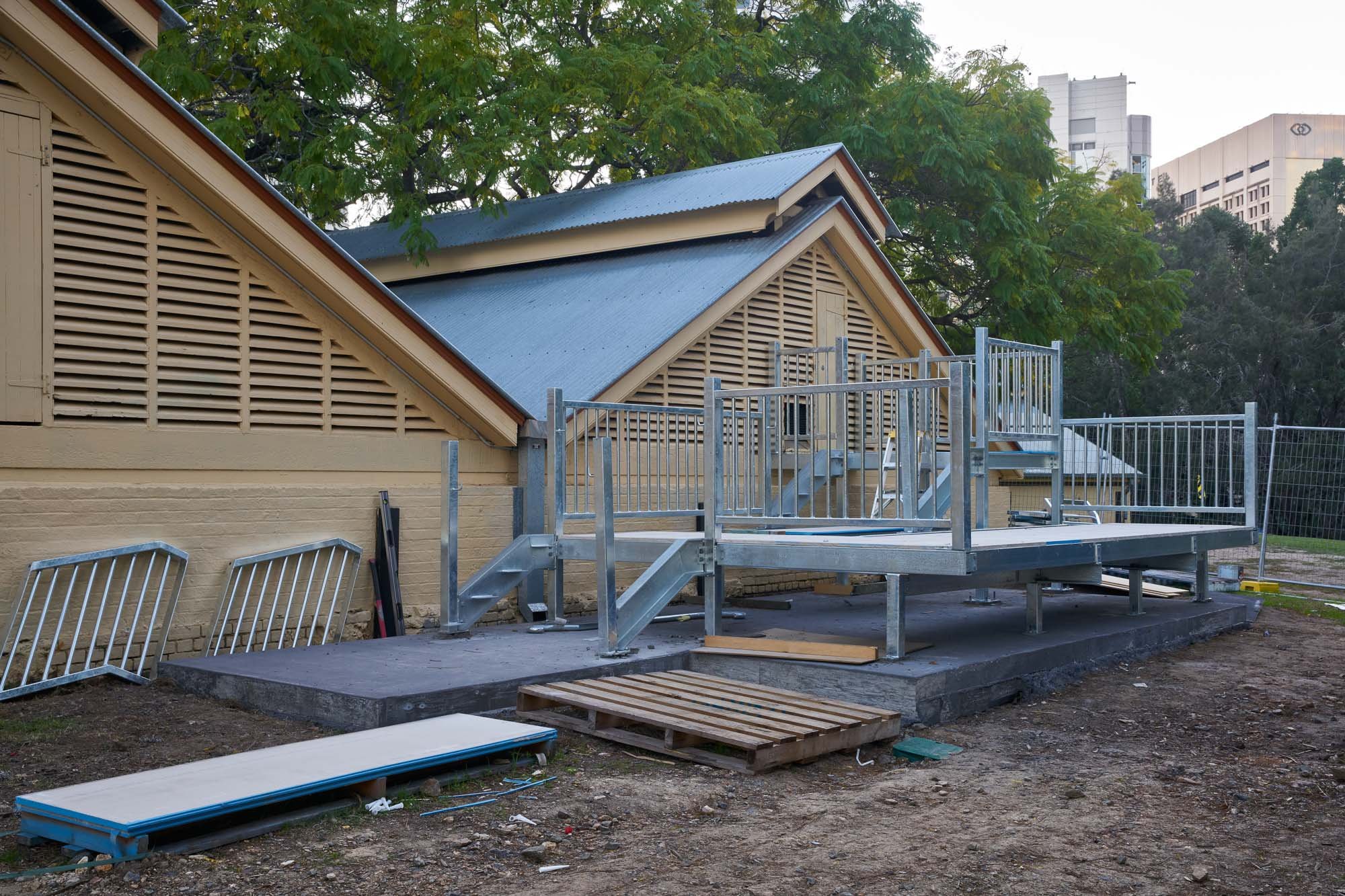 Installation progress of galvanised steelwork to heritage Wickham Terrace Reservoir